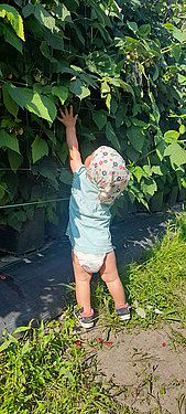 Da wir in einem ländlichen Gebiet wohnen, haben wir das große Glück verschiedene Höfe besuchen zu können. Dort erleben die Kinder, welche Gemüse- und Obstsorten angebaut werden. Was man für den Anbau benötigt und wann geerntet werden kann. Oft werden die Kleinen zum Ernten eingeladen oder bekommen die Gelegenheit, ein gerodetes Kartoffelfeld abzusammeln. Dann geht es mit Bollerwagen, Eimern und Schaufeln los. Es wird gebuddelt und gesammelt, was das Zeug hält. Schwer beladen kommen wir in die Kita zurück.